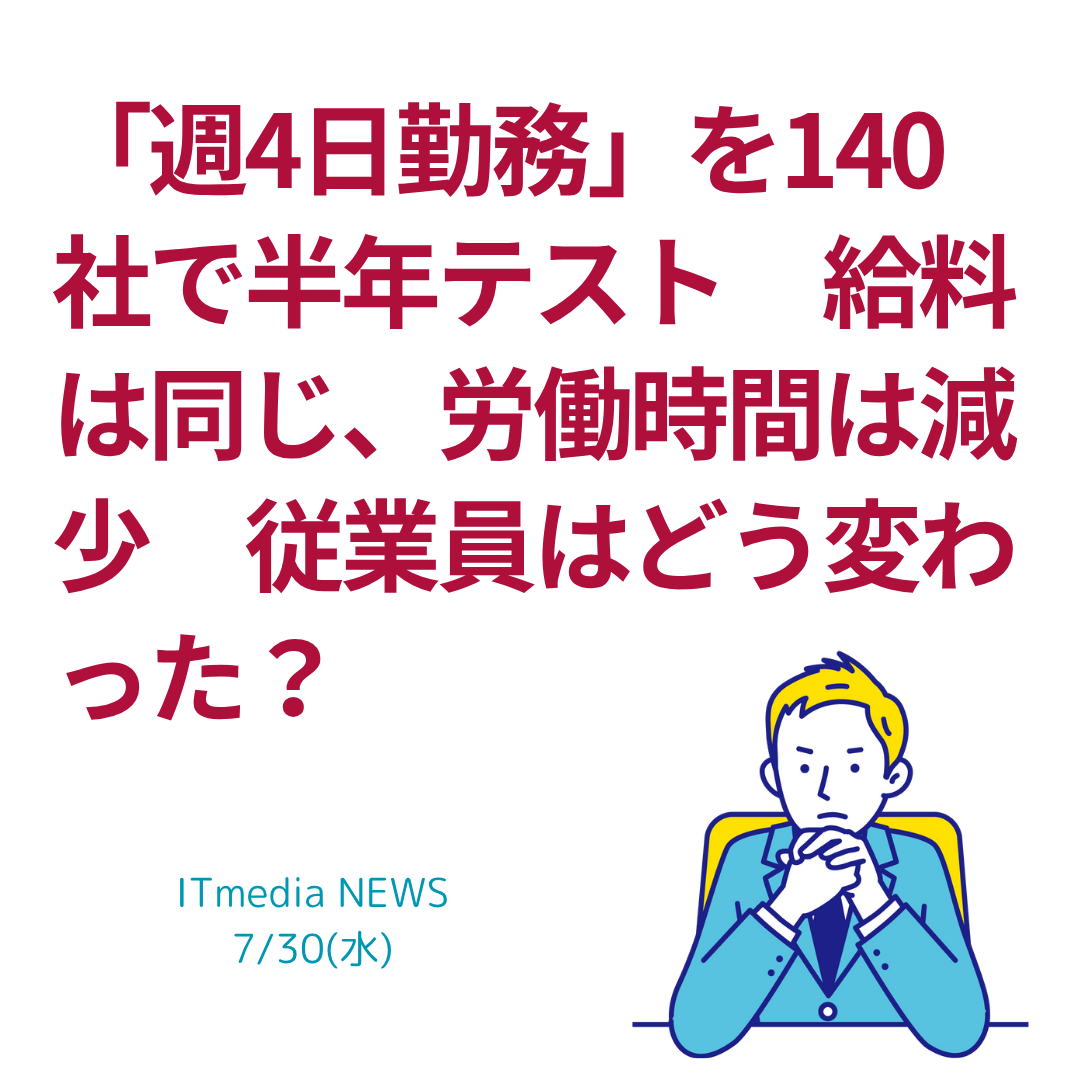 ① 「週4日勤務」実験が証明したこと 2023年、米ボストン・カレッジとアイルランドのユニバーシティ・カレッジ・ダブリンの研究チームが、世界的に注目を集める実験結果を発表した。それは「週4日勤務」を導入しても、従業員の生 … 続きを読む 月給で労働者の全てを支配したがる時代遅れな日本の経営者が生産性向上を阻んでいる(2025.7.30)