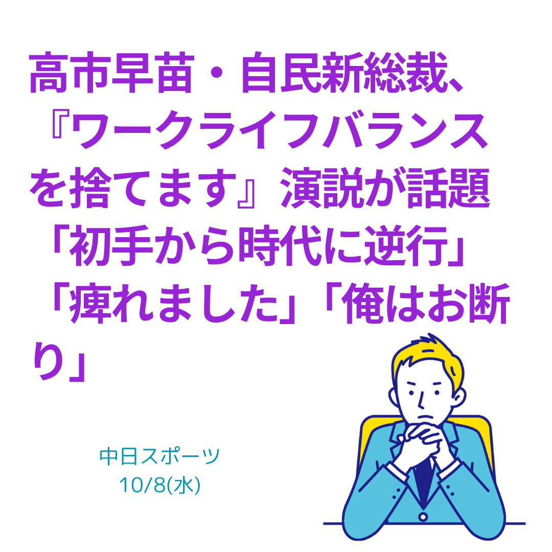 第1章 「WLBを捨てます」──発言の本意と誤読の構図 2025年、自民党の総裁に選出された高市早苗氏が語った「私はワークライフバランスという言葉を捨てます」という一言が、SNSを中心に炎上した。だが、この発言は本当に時 … 続きを読む ワークライフバランスという社会命題を炎上材料にするメディアは卑怯だ(2025.10.8)