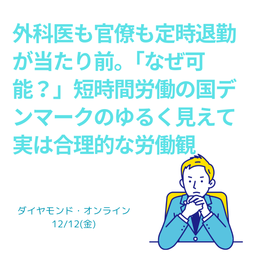 外科医も官僚も定時退勤が当たり前。「なぜ可能?」短時間労働の国デンマークのゆるく見えて実は合理的な労働観(ダイヤモンド・オンライン)
