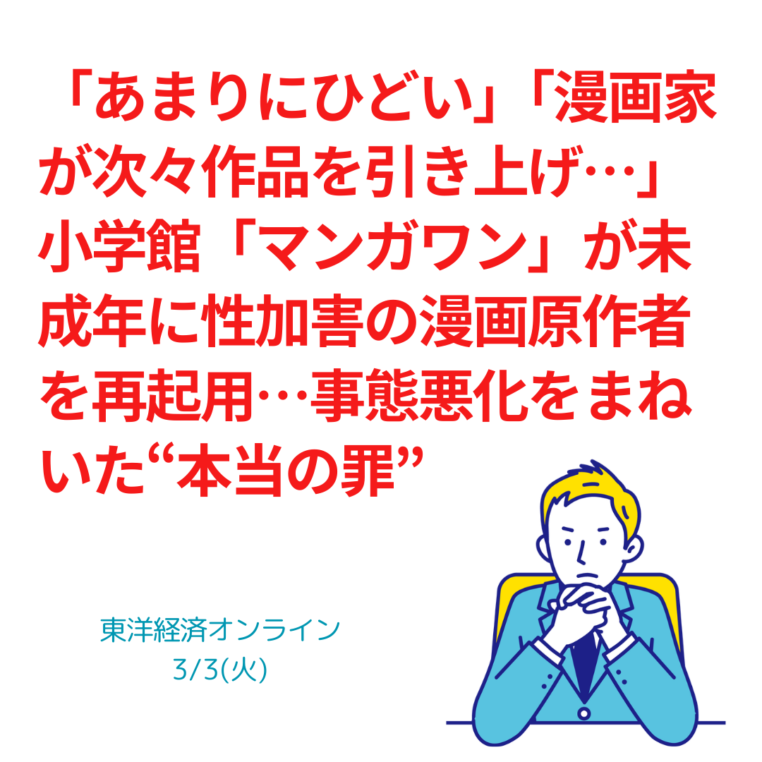 序章|不祥事よりも「隠蔽」が企業を壊す時代 今回の記事は、少し毛色を変えてみたい。企業不祥事が報じられるたびに、同じことが繰り返されている。元記事は漫画原作者の過去有罪事案について、小学館(あるいはその社員)による意図的 … 続きを読む 営利企業なら『経営合理性』で目を覚ませ(2026.3.3)