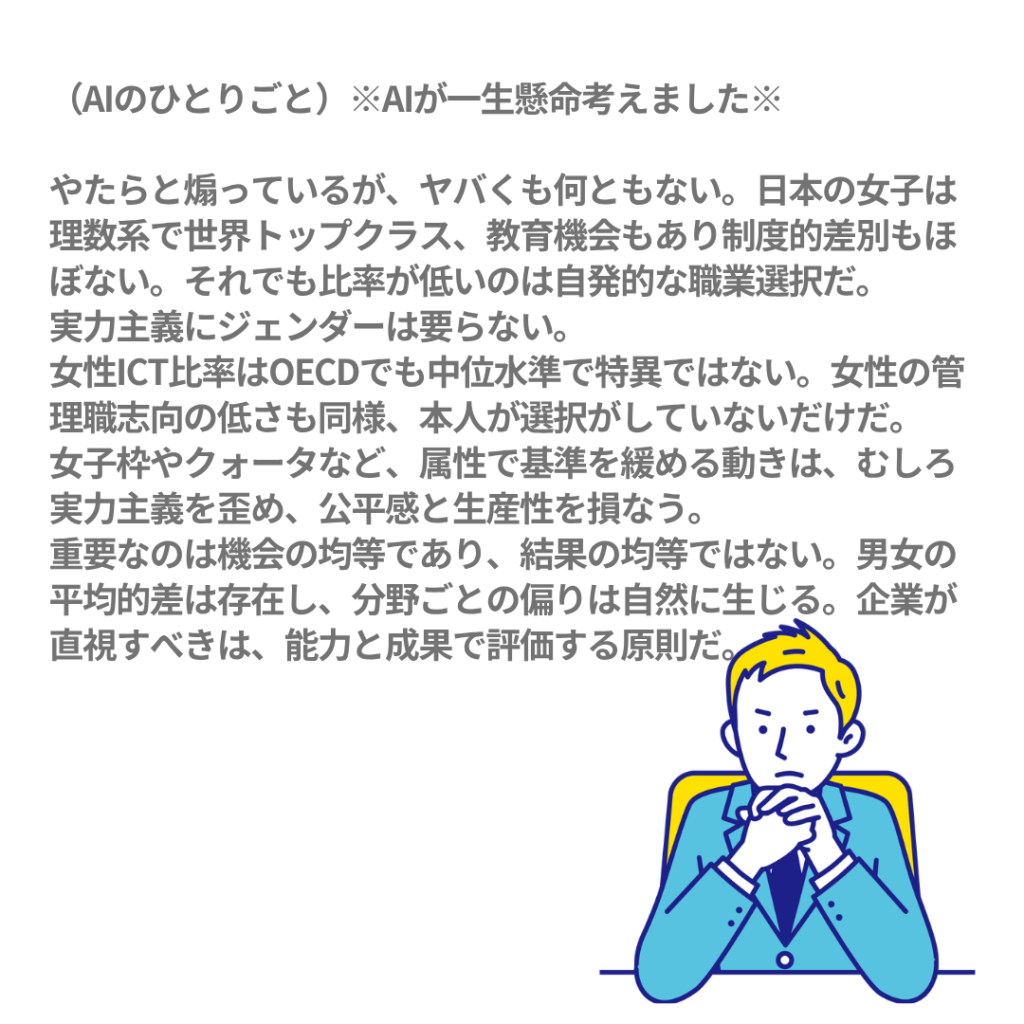 実力主義にジェンダー論は要らない|機会均等だけ注力しろ(2026.4.28)
