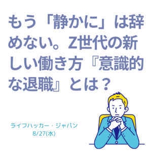 未分類 会社は「意識的な退職」のバリューを見直すべきだ(2025.8.27) 1. いま、働き方に何が起きているのか 「静かな退 Read More » 8月 27, 2025 コメントはまだありません