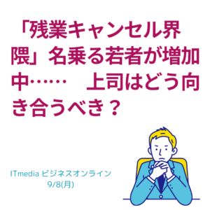 未分類 残業はマネジメントの失敗である|部下より業務計画を責めよ(2025.9.8) 第1章|残業しない若者を「困った」と感じる前に 「 Read More » 9月 8, 2025 コメントはまだありません